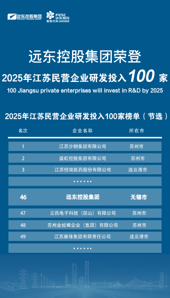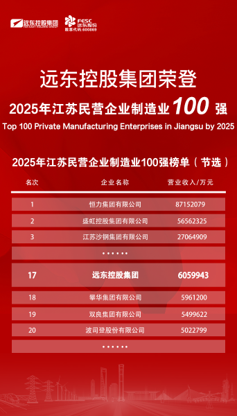 实力上榜!远东荣登2025江苏民营企业百强22位